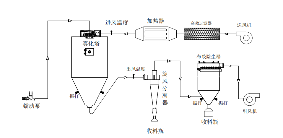 干燥后的粉末狀產(chǎn)品通過(guò)收料器收集,可以根據(jù)需要進(jìn)一步處理。
